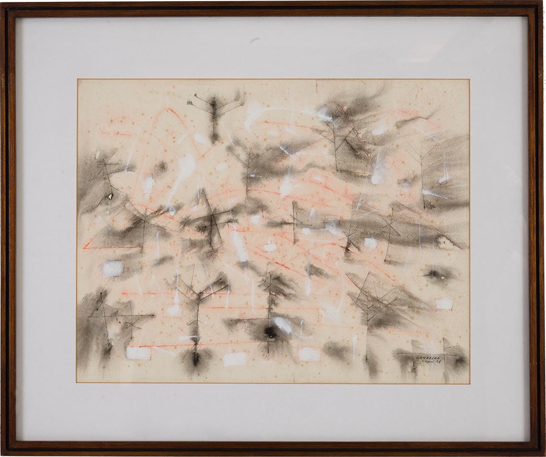 Pinacoteca), Judith Lauand (MAM, IAC e MASP), Luiz Sacilotto (IV Bienal de São Paulo), todas de excelente qualidade. Também deve-se destacar o raro Gomide, ex-coleção Prof. Bardi, dois excepcionais Rubens Gerchman adquiridos no início dos anos 70 nas exposições do artista na Galeria Ralph Camargo, além do papel nepalês de Antonio Dias e dos “Índios com Cesto” de Portinari, de 1937, da série do MEC, com invejáveis apresentações em exposições museológicas antológicas, não esquecendo que o tema “Índios” é um dos temas mais venerados na recente contemporaneidade.